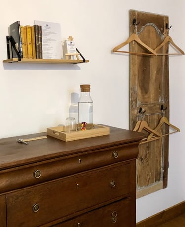 Sa grande fenêtre vous offre une vue sur une ruelle tranquille du village. Elle est située à l’étage et son accès se fait par l’escalier en pierre marqué par le passage du temps.
